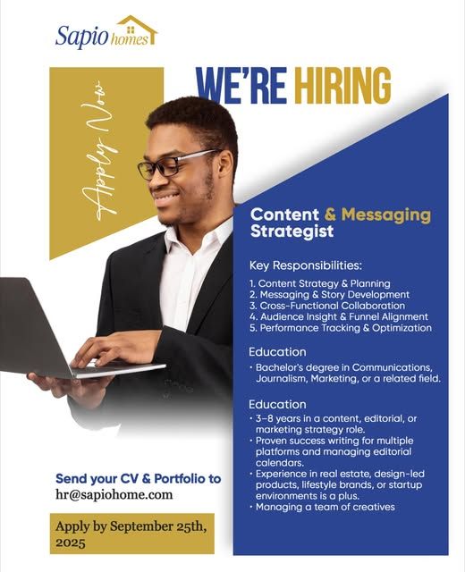📢 Now Hiring: Content & Messaging Strategist – Sapio Homes