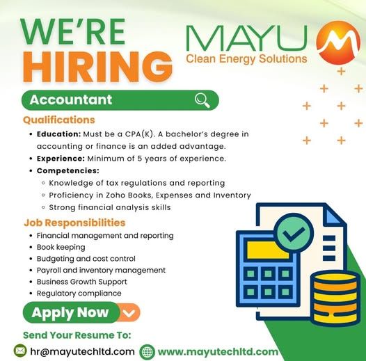 #MayuSolar #IkoKaziKE #HiringNow #AccountantJobs #FinanceCareers #CPAJobs #RenewableEnergy #JobOpportunitiesKE