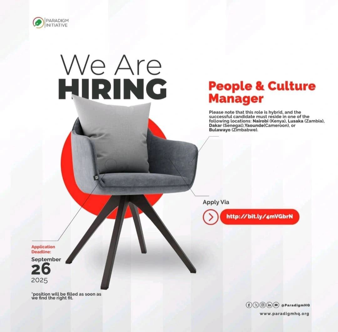Paradigm Initiative is seeking a dynamic People & Culture Manager to drive our HR strategy and nurture a workplace where every team member feels valued, engaged, and empowered.