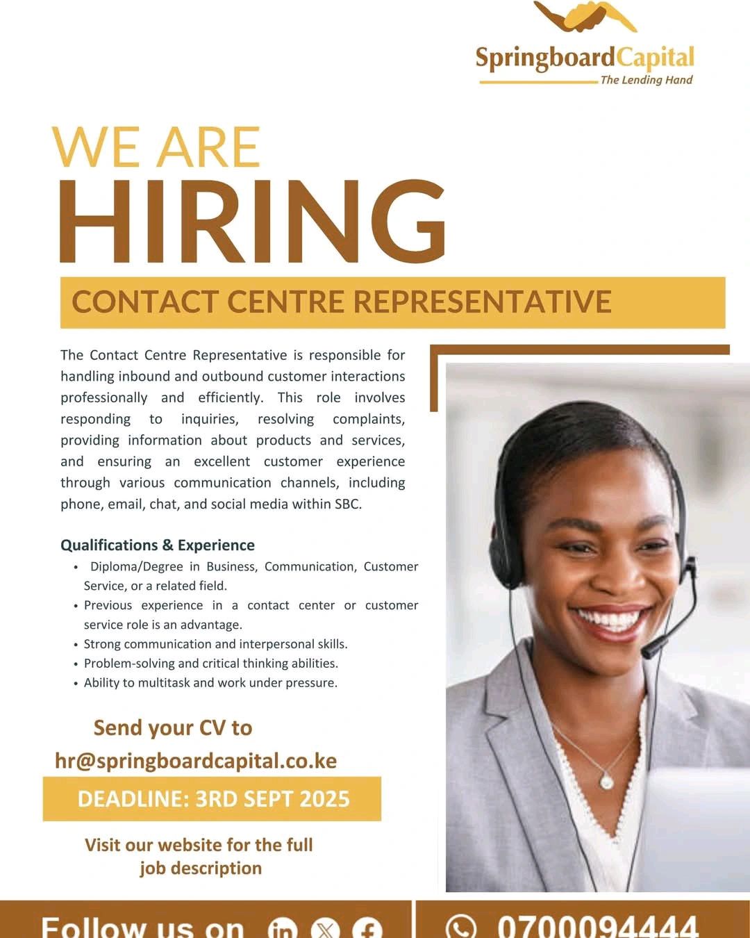 Are you interested in joining SpringboardCapital team as a Contact Centre Representative?