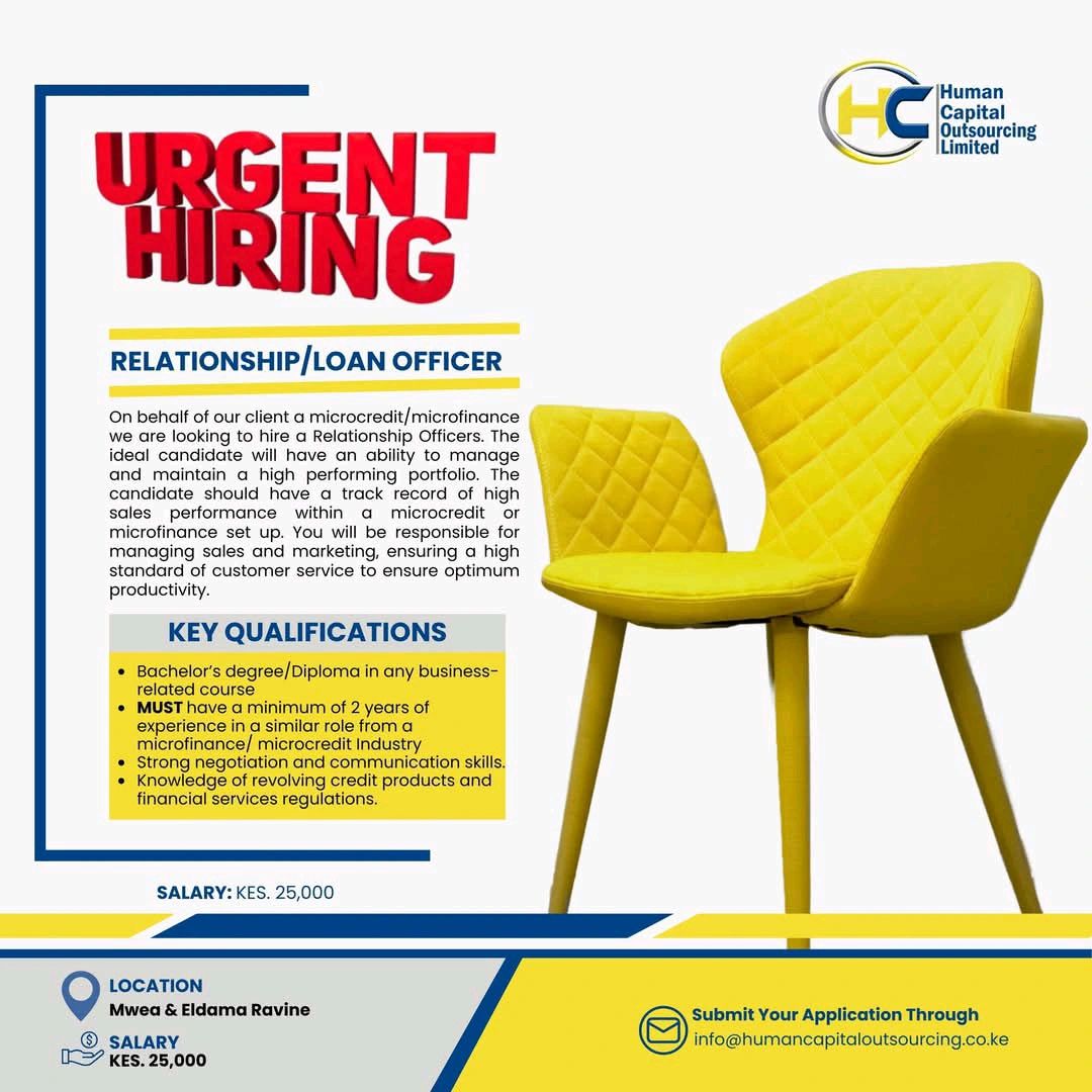 #wearehiring #loanofficer #microfinance #relationshipofficer #CareerOpportunity #humancapitaloutsourcing #jobsinkenya #