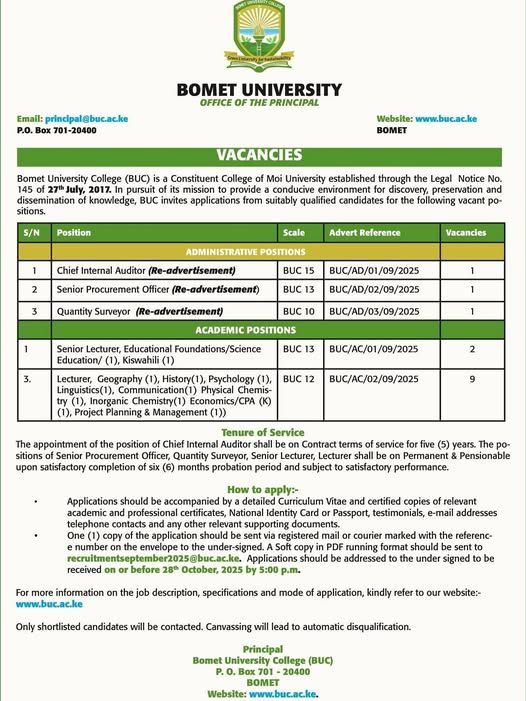 Bomet University College (BUC) are hiring! 🎓