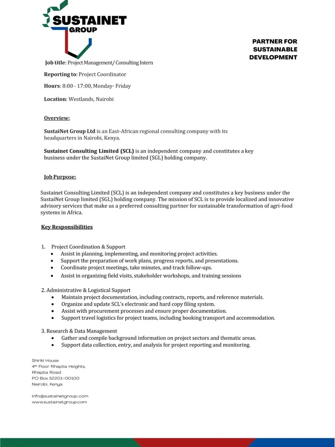 Sustainet Group Ltd is looking for a Project Management/Consulting Intern in Westlands, Nairobi. This is your chance to gain hands-on experience driving sustainable agri-food transformation in East Africa.