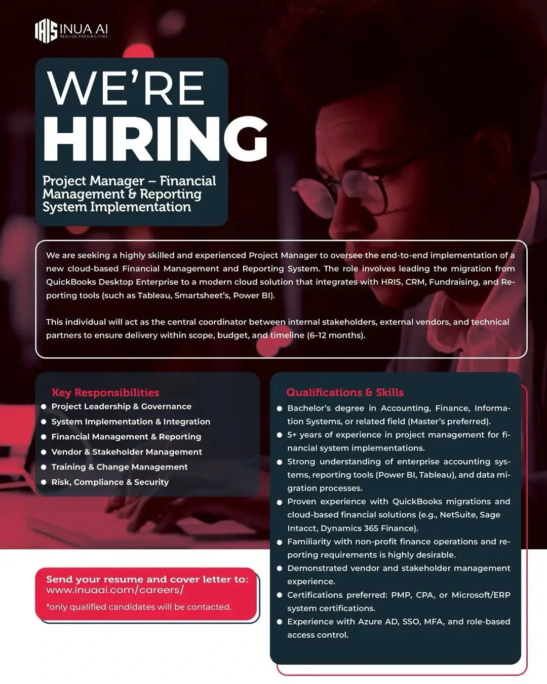 INUA AI Group is looking for a talented Project Manager to spearhead their Financial Management System migration. This is your chance to: