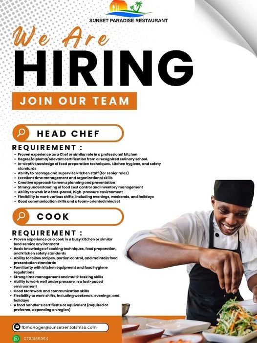 Opportunities at Sunset Paradise restaurant #IkokaziKE #JobSearchKE #JobHuntKE #KenyaJobs #NairobiJobs #JobsKE #CareerKE #HustleKE #JobAlertsKE #JobVacancyKE