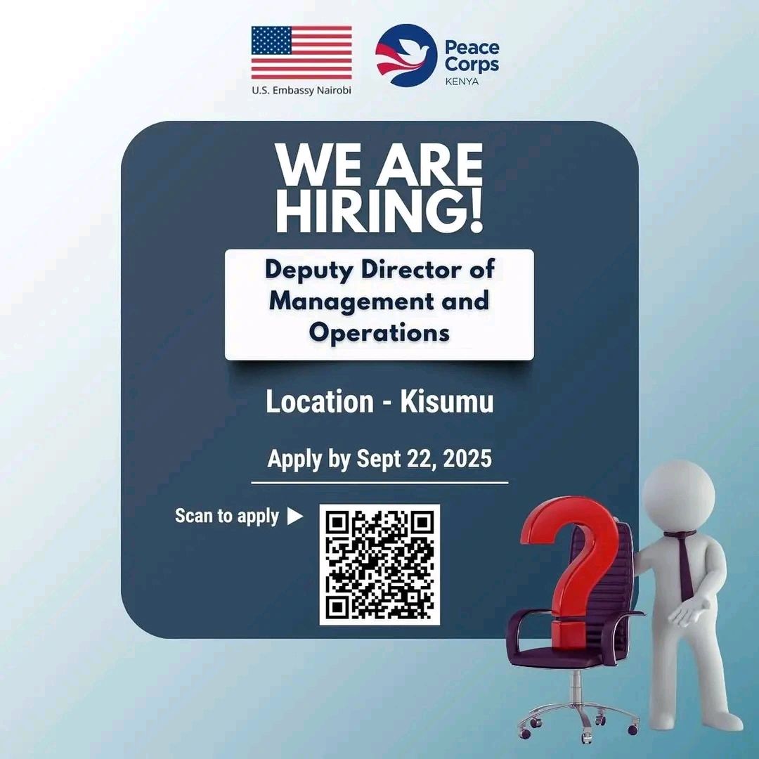 Peace Corps Kenya is hiring a Deputy Director of Management and Operations. Apply in the link below, by September 22. https://lnkd.in/dCNpkhbP